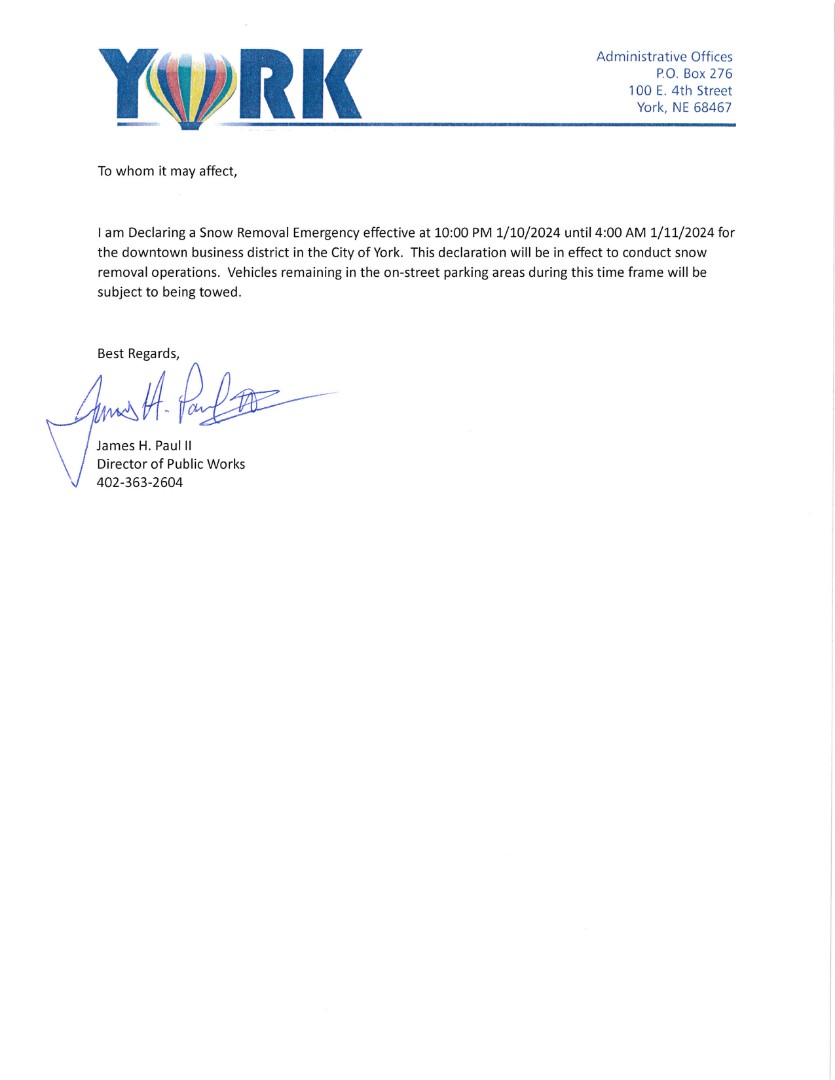 Snow Removal Declaration Issued