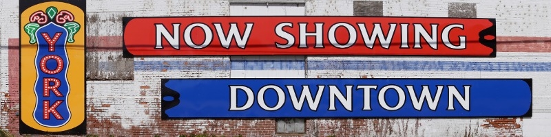 The Now Showing: Downtown sign was designed by Annie Redfern in conversation with Arts Around Town, an informal group of individuals seeking to advance public art in York. Dan Brahmsteadt offered his wall that sits at the . . .