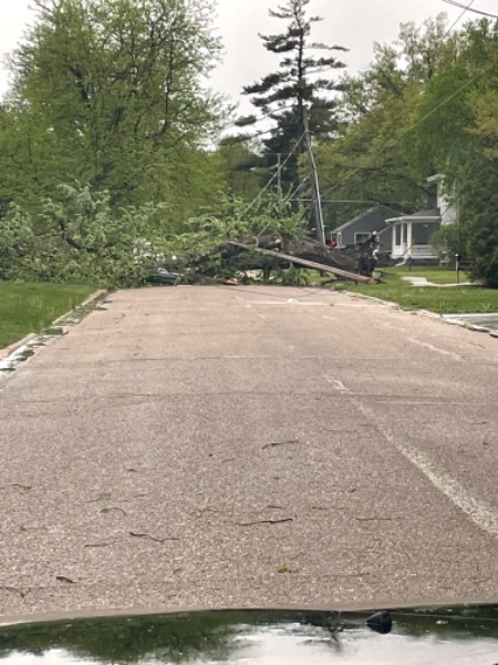 If there are downed Power Lines...Stay Away! It may look De-Energized but Don't take a chance! Let the Utility Companies Survey the damage.