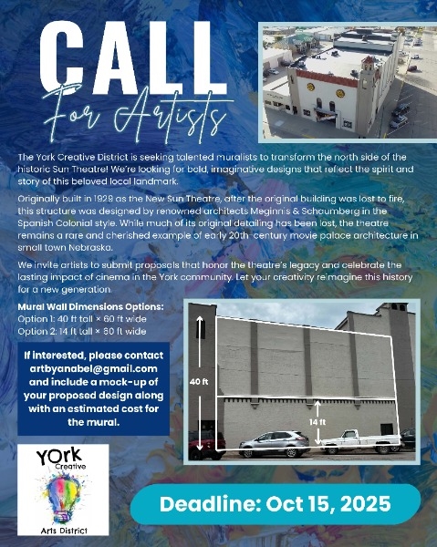 The York Creative District is seeking proposals for a new mural in downtown York. We're looking for bold, imaginative designs that reflect the spirit and story of the historic Sun Theater. We invite artists to submit proposals that honor . . .