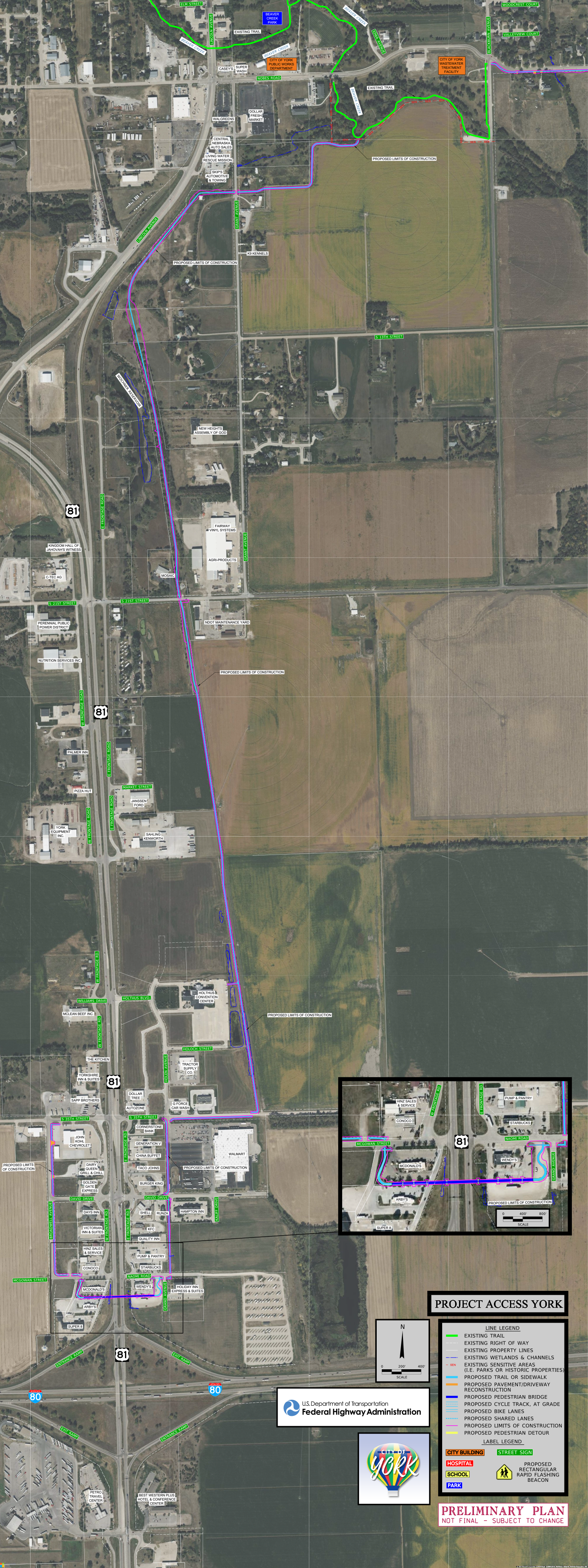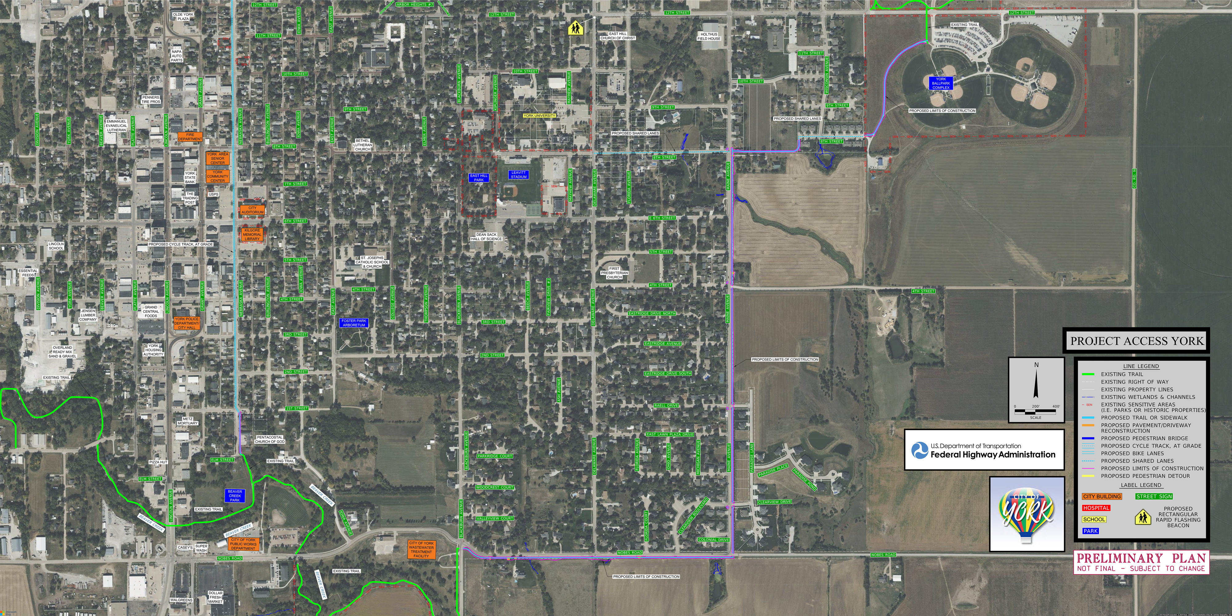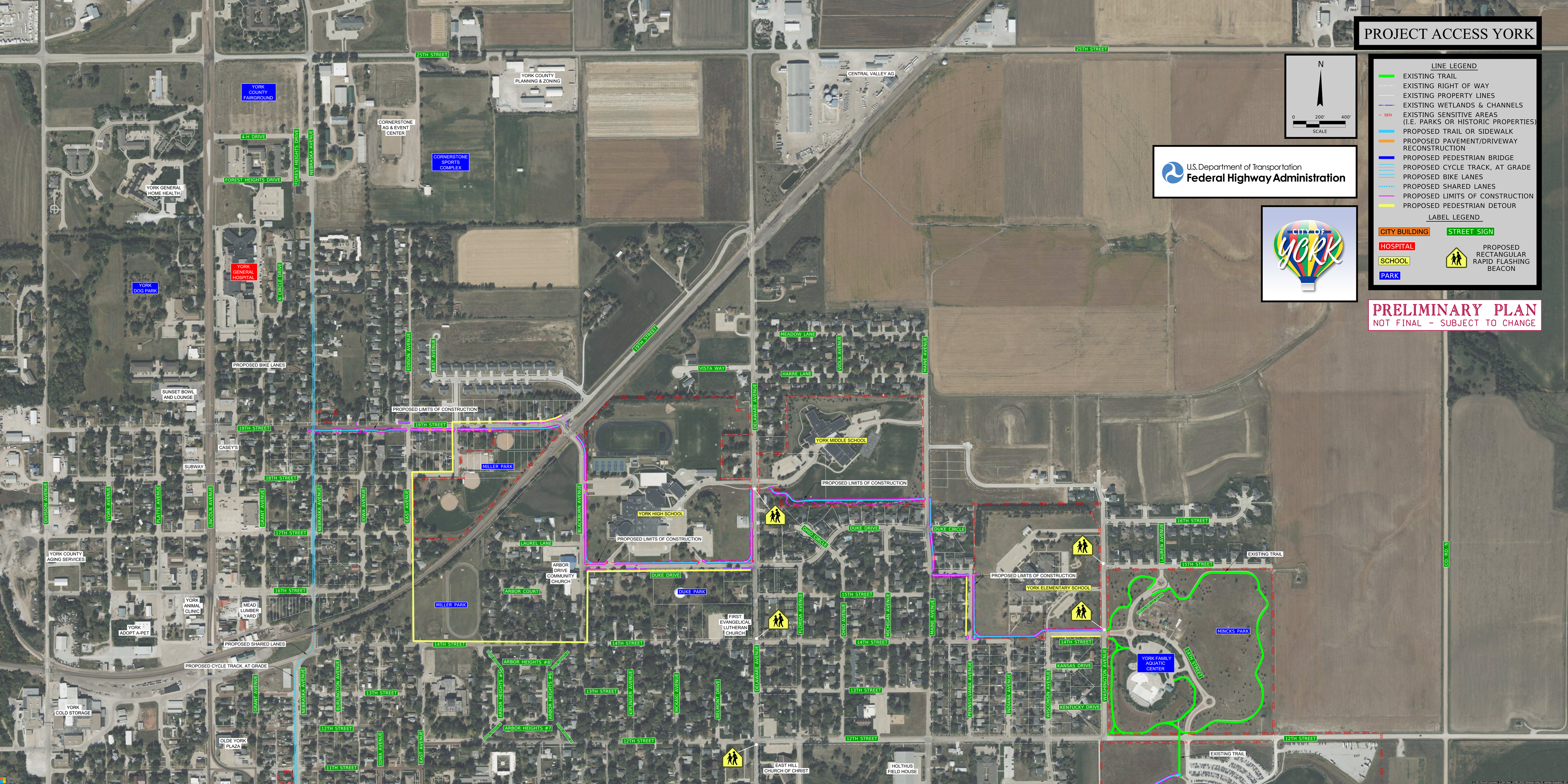 In 2022, the City of York was awarded a federal grant for $15,625,000 for Project Access York, a pedestrian and bicycle infrastructure and safety project to connect and extend our existing trail network. Project Access York includes an overpass over a busy highway that intersects the City, pedestrian and bicycle trails for access to jobs, food, and quality of life amenities, and safe crosswalks for schools.
